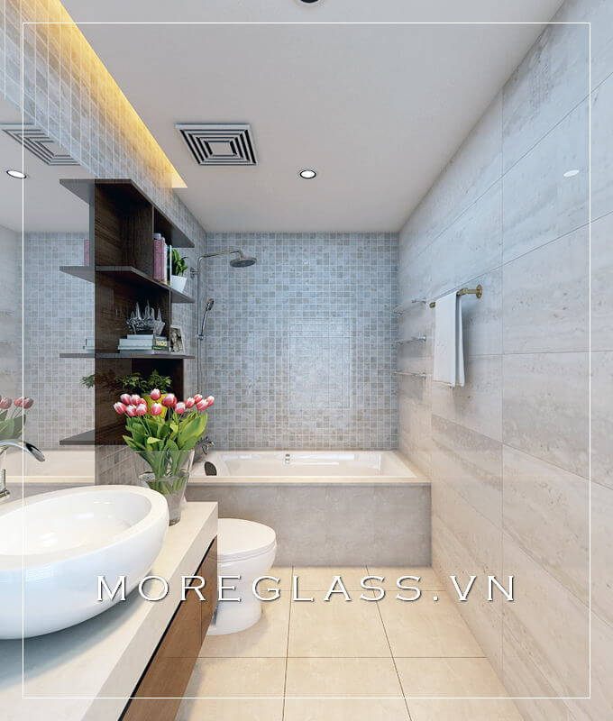 Một phòng tắm được tối ưu hóa về ánh sáng và màu sắc giúp xua tan đi căng thẳng sau một ngày dài, biến nơi đây thành góc thư giãn cá nhân. Hãy tưởng tượng sau khi tắm, bạn được sống trong một không gian mềm mại, ấm cúng với những ánh đèn nhẹ nhàng và các chi tiết nội thất tinh tế.