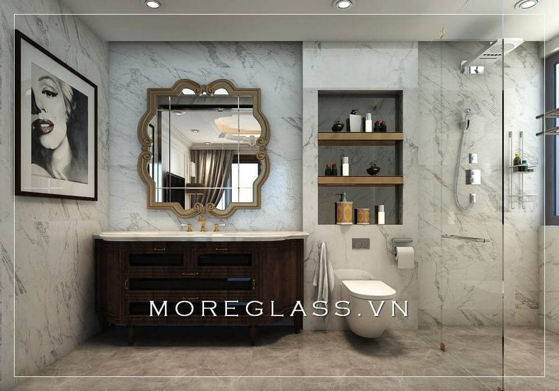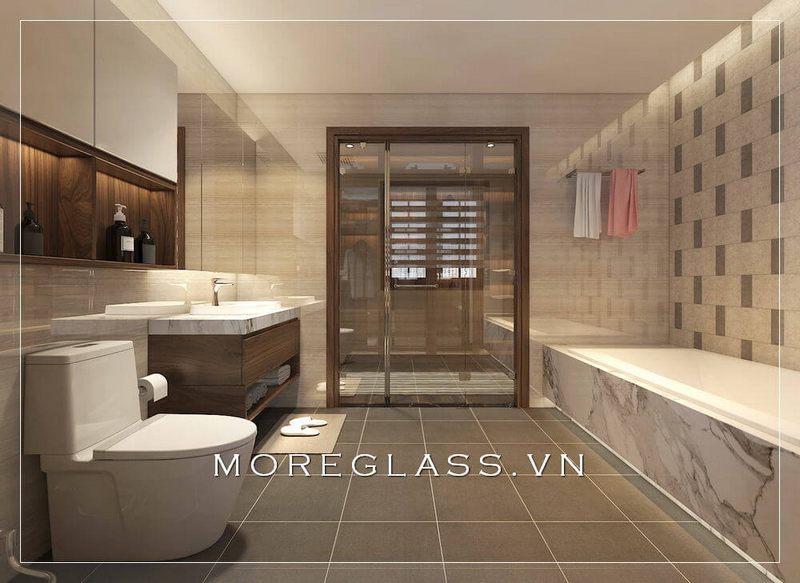 Phòng tắm được trang trí bằng kính cường lực cao cấp.